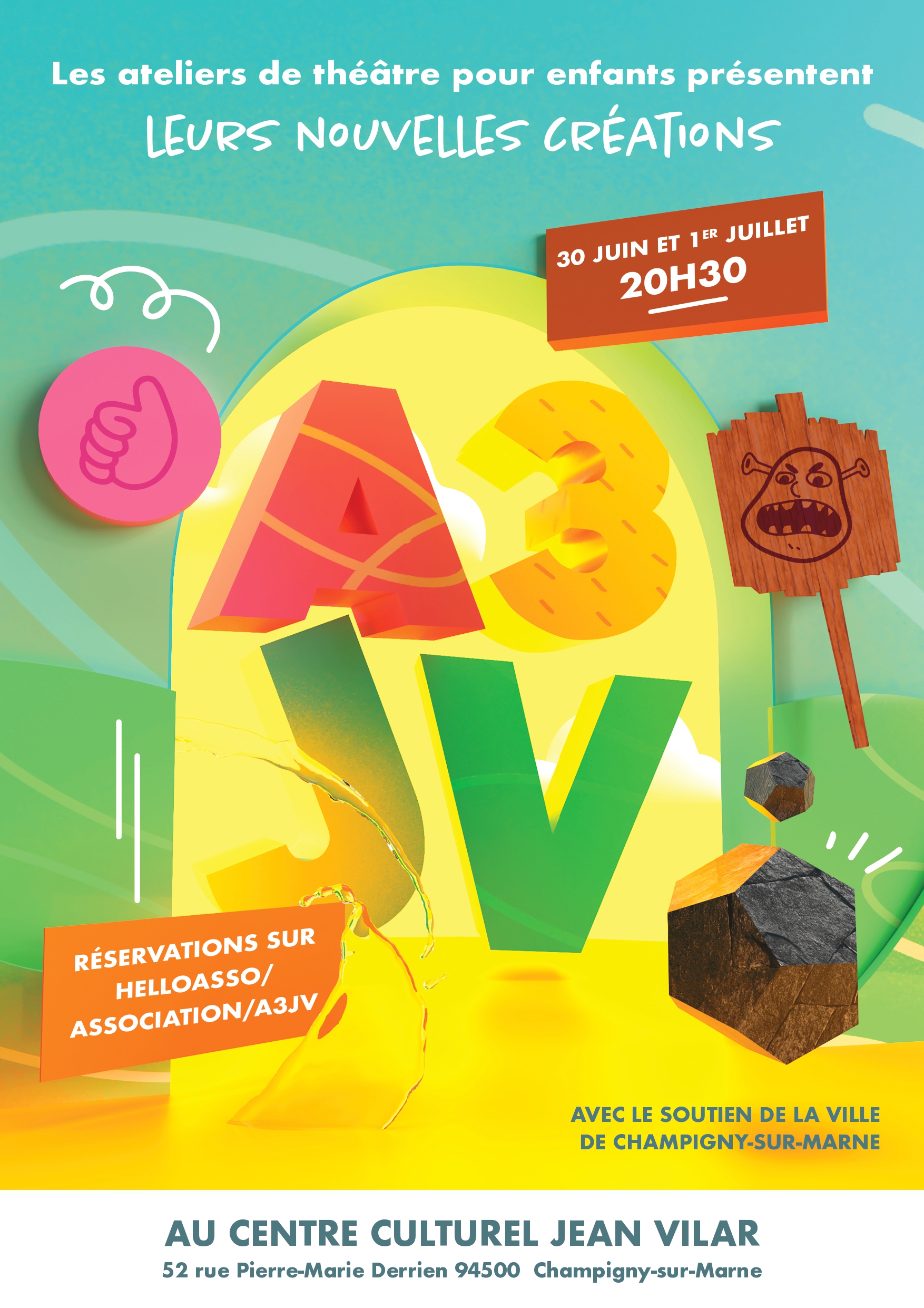L’ambition de l’association A3JV est de proposer une activité théâtrale accessible à tous les enfants quel que soit leur condition sociale.